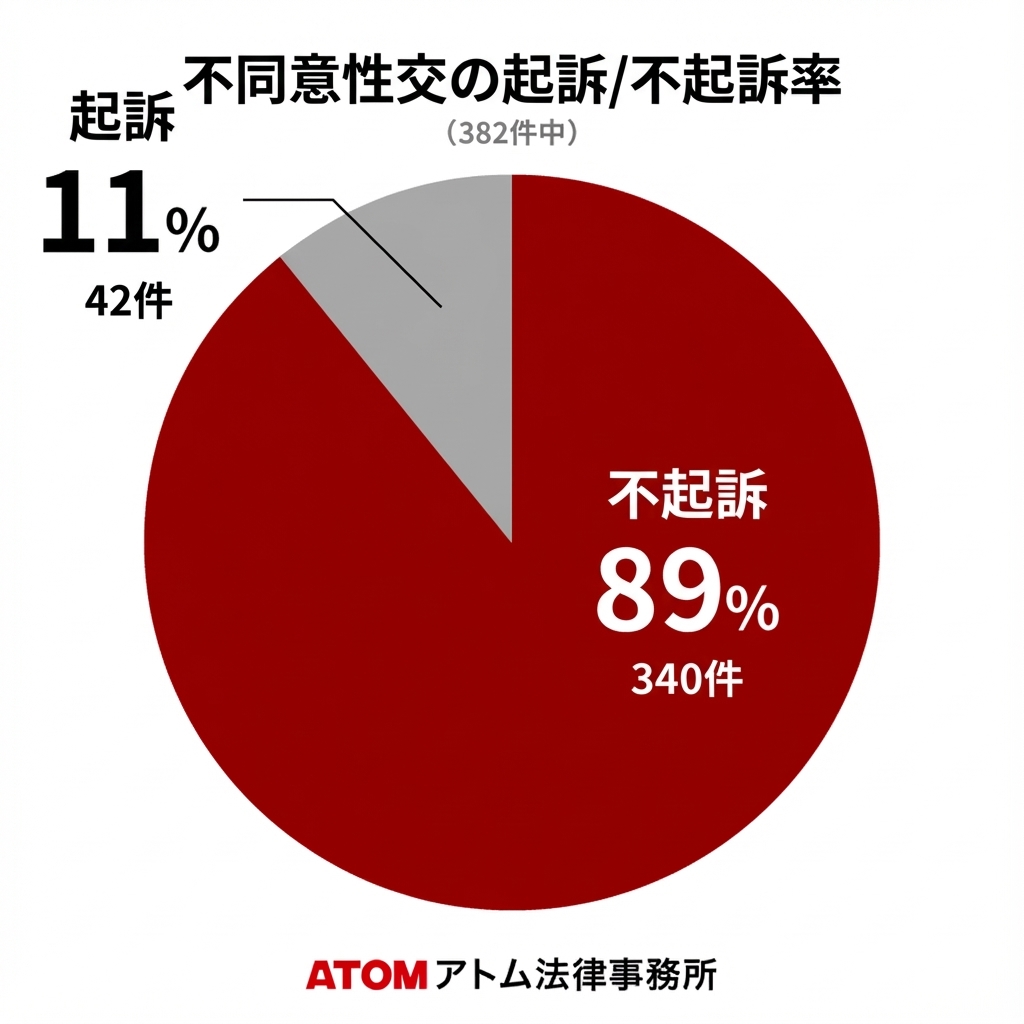 アトム法律事務所が解決した不同意性交事件をもとに、統計データと解決事例を紹介しています。