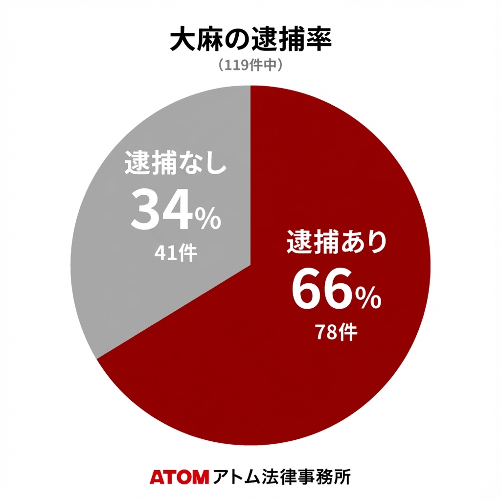 アトム法律事務所が解決した大麻事件をもとに、統計データと解決事例を紹介しています。